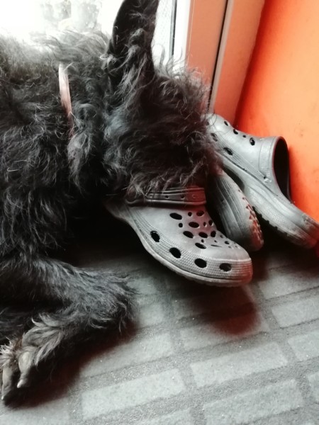 Stavili jsme se i do hospody,kde chvilku pozoroval televizi a pak si lehl.Asi superstar,co tam jela,ho nudila 😂 Doma je samozřejmě teď trochu nejistý, ty tri kočky jsou na neho asi moc,takže k misce s granulkama jsem ho musela nalákat jak v té pohadce,kde děti drobily chleba.Takže jsme se po cesticce z granuli dostali az k misce.Tu tedy plnou sporadal asi na tri tahy.😊 Dnes a asi jeste nez si zvykne bude spat u nas v loznici,kam kocky nechodí.Jinak snaha o vykoupani se totalne minula ucinkem,do vany jsem ho dostala,ale jak se zapla voda,tak vyskocil ven.Takze ja i koupelna jsme se.octli v záplavě bahna.😂😂Tak to zkusime treba zitra znovu.Treba se to uz povede a bude z nej voňavý pejsek.😊