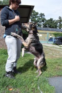 Už měl párkrát na mále, ale je vidět že je to bojovník a že se mu tu s námi líbí. A tak vždy zabojuje a užívá si naší péče dál. Chutnat mu stále chutná a poťapat si do výběhu také stále chodí. Stále jej baví zaštěkat si na ostatní psy, jen udržet svou vlastní rovnováhu při strašení jiných psů je čím dál pro Dexe problematičtější.