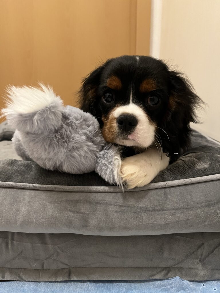 Chtěla jsem vás informovat, že jsme se rozhodli změnit jméno Endy na Mickey, doufám, že to není problém? Také vám posílám pár fotek tohoto úžasného kluka. Adaptace proběhla skvěle – rychle a nenápadně. Má moc rád polštáře, gumové kostičky a měkké hračky, je přátelský ke všem a velmi hravý. Rychle se učí, už reaguje na jméno, umí „ke mně“, „jdeme“, „sedni“, „čekej“. A posíláme par fotek.