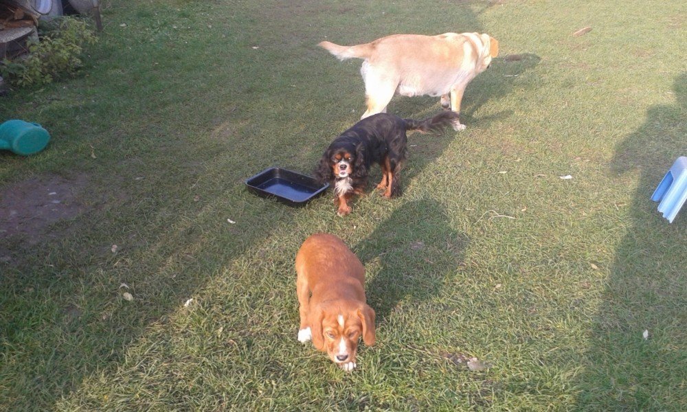 na základě dnešního telefonátu s Vámi posíláme fotky našeho Rexíka, kterého bychom rádi darovali. Je to pes,kříženec čistokrevných rodičů, matka labradorka a otec královský kavalír. Je to venkovní pes, velmi hravý, hodný,poslušný a má moc rád děti. Je zvyklý na volnost. Je starý 7 měsíců, váží cca 8 kg. Co se týče stravy, je zvyklý na granule a vařené těstoviny. Pes je zdravý, odčervený, očkovaný a má svůj očkovací průkaz.