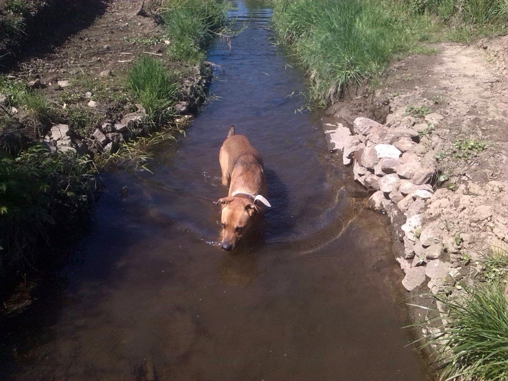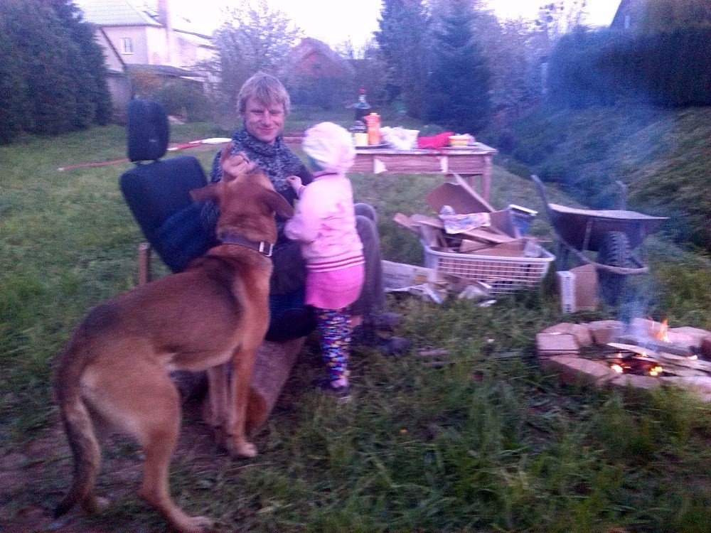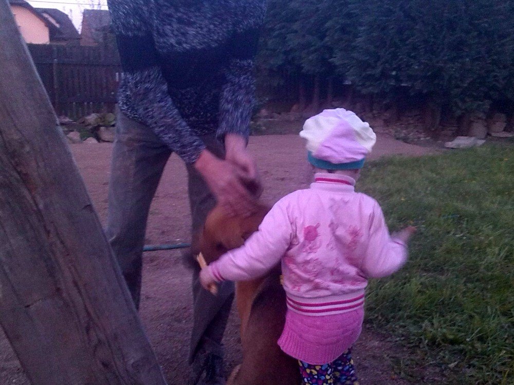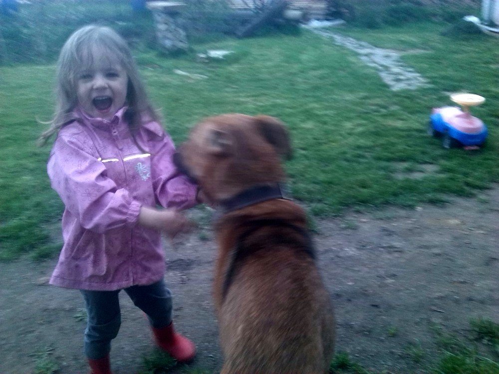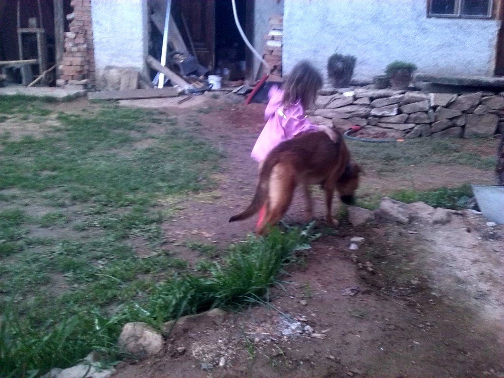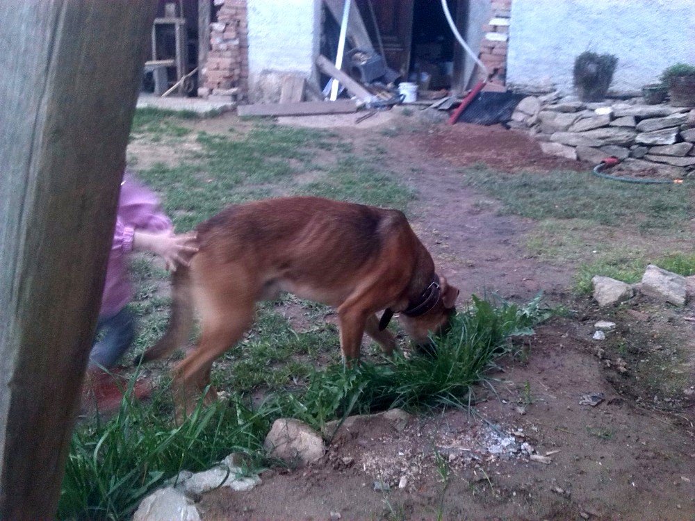 Byl jsem pojmenován Rohan, ale říkají mi všelijak : Panička mi říká Rohane, páneček Ronane a to malé nechlupaté pískle Johane 🙂 . No, slyším na vše, ale Rohana mám asi nejradši. Měl jsem strach, co mě čeká, ale po třech týdnech u své nové rodiny jsem šťastný. Sice jsem nejroztomilejší pes, kterého kdy měli, ale jsem strašný útěkář, panička mi říká : ,,TY JSI DRUHEJ KÁJINEK!!!!!“ . Dokuď nedodělají plotek u tujek, které maji sousedi, abych jim neutíkal, už se to blíží, musím být na řetězi, dokuď za mnou někdo nedojde. Ale když je někdo doma, ať už panička, páneček, nebo ta divně milá „babička“ , tak jsem puštěný. Nejspíš na tom pravdy něco bude, jenže já nedokážu pochopit to, že panička musí s pánečkem do práce a já musím počkat na ně a mezitím být sám 🙁 . Ale pomalu se to zlepšuje. Kočky už moc nehoním, protože se mi snažili vysvětlit, že sami mají dvě a proto je nesmím sežrat. Jenže, když ony tam suprově ječí, když je honím :-D . Nejdřív jsem spával na staré péřové peřině v budoucí kuchyni, ale pak mi páneček vyrobil super boudu, no ta je vám taková bomba 🙂 Příště zašlu foto i boudy, to jsem nějak nestihl :-( . Miluji skoro všechny, s kterými jsem se seznámil, občas sice zablafám, většinou teda, když jdu s paničkou pro pískle do školky, panička mě uváže, tak to štěkám steskem, stále se bojím, že se pro mě nevrátí… Ale vyji, jejej, už i sousedi nadávají :-D . Panička mi říká, že si nepořídili psa, ale krávu, prý vyji jako když kráva bučí :-) . Ale jsem velice šťastný, na vycházky chodíme dozadu za vesnici na pole a honím ušáky a srnky, ale vždycky jsem se zatím vrátil. A nesnáším sousedova psa, to je vám takovej hnusnej pes s dredama a jmenuje se „PIŠKOT“ , no hloupější jméno snad ani dostat nemohl :-D . Už jsem i opékal buřty a pískle mě jimi krmilo, to dostalo ale vyhubováno, když mi tajně podstrčila celej buřt 🙂 a panička mě honila po zahradě, ale já ho slupl a bylo po buřtu 🙂 . Jsem rád, že jsem konečně doma, protože jsem šťastný a moje rodina mě také miluje.