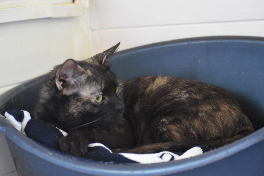 zdravotní stav: kastrovaná ,  FIV/Felv negativní ,  při příjmu: blechy, svrab v uších,