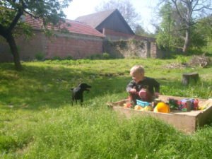 Posíláme pár fotek naší Zoji, která se ze psího bezdomovce stala hrdou majitelkou dvora a několika gaučů a dětských postelí. Fotí se ale hrozně špatně, protože nevydrží vteřinu v klidu. Proto máme spoustu obrázků psích ocasů, zad, nebo čenichů, tak posílám ty, na kterých je alespoň větší část psa.
